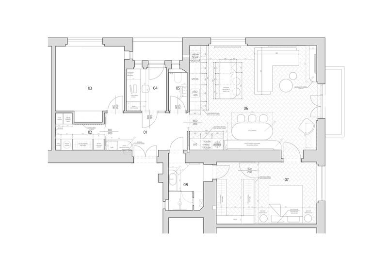 studie interiéru bytu a stručná výkresová dokumentace ke stavební části projektu